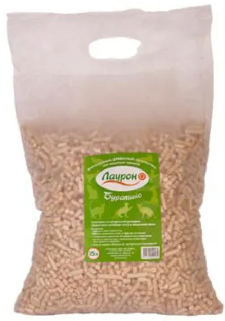 Гигиенический наполнитель для кошачьего туалета "Лаурон БУРАТИНО" изготовлен из натурального сырья - древесных гранул