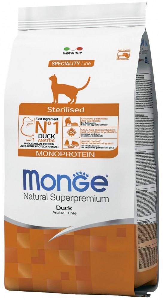 Корм сухой Monge Cat Sterilised Duck корм для стерилизованных кошек с уткой 1,5 кг