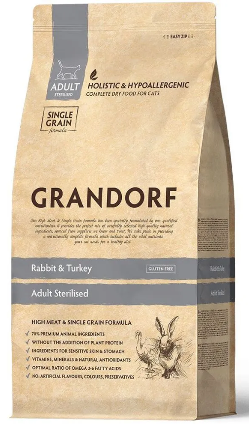 Корм сухой Grandorf Sterilised кролик с рисом для стерилизованных кошек
