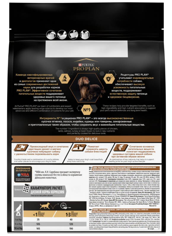 Этот корм обеспечит полноценное и сбалансированное питание, здоровье и хорошее самочувствие Вашему маленькому питомцу. Новинка Duo Delice для собак мелких и карликовых пород также способствует сохранению здоровья зубов и улучшению работы пищеварительной системы. Мы убеждены, что Ваш питомец должен быть не только здоровым, но и счастливым.