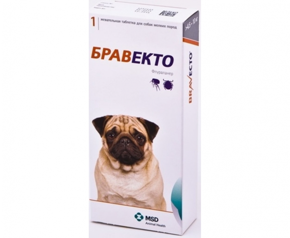 Бравекто назначают собакам для лечения и профилактики афаниптероза, в комплексной терапии вызываемого блохами аллергического дерматита, а также акарозов, вызываемых иксодовыми клещами ИНСТРУКЦИЯ по применению препарата Бравекто (Bravecto) СОСТАВ И ФОРМА ВЫПУСКА Таблетки для орального применения Бравекто выпускают в 5 дозировках, содержащих в качестве действующего вещества флураланер, в 1 таблетке соответственно: 112,5 мг, 250 мг, 500 мг, 1000 мг или 1400 мг. По внешнему виду препарат представляет собой таблетки от светло- коричневого до темно-коричневого цвета округлой формы с гладкой или слегка шероховатой поверхностью, возможно наличие вкраплений. Бравекто выпускают расфасованным по 1 таблетке в блистеры из алюминиевой фольги, помещенные поштучно в картонные пачки вместе с инструкцией по применению. ФАРМАКОЛОГИЧЕСКИЕ СВОЙСТВА Бравекто относится к инсектоакарицидным лекарственным препаратам системного действия. Входящий в состав препарата флураланер - (4-[5-(3,5-дихлорфенил)-5- (трифторметил)-4Н-изоксазол-3-ил]-2-метил-N-[2-оксо-2-(2,2,2-трифторэтиламино) этил] бензамид) - инсектоакарицид группы изоксазолина, активен в отношении блох (Ctenocephalides felis и Ctenocephalides canis) и иксодовых клещей (имаго и личинки Ixodes ricinus, Ixodes hexagonus, Ixodes scapularis, Ixodes holocyclus, Dermacentor reticulatus, Dermacentor variabilis и Rhipicephalus sanguineus), паразитирующих на собаках. Механизм действия флураланера заключается в блокировании ГАМК-зависимых и глутамат-зависимых рецепторов членистоногих, гипервозбуждении нейронов, нарушении передачи нервных импульсов, что приводит к параличу и гибели эктопаразитов. После перорального введения препарата флураланер легко всасывается в желудочно-кишечном тракте и достигает системного кровотока, максимальная концентрация в плазме крови достигается в течение 1 дня, биодоступность составляет 20-27%, прием корма ускоряет всасывание. Выводится флураланермедленно, преимущественно в неизмененной форме с фекалиями (~90% дозы) и частично с мочой, период полувыведения - 12 суток. Препарат начинает действовать через 4 часа после применения и вызывает гибель блох через 8 часов после прикрепления к организму хозяина, клещей - через 12 часов, предотвращая повторную инфестацию собак эктопаразитами. Гибель блох происходит до откладки яиц, что профилактирует контаминацию помещений яйцами и личинками. Бравекто по степени воздействия на организм относится к веществам «малоопасным» (4 класс опасности по ГОСТ 12.1.007-76), в рекомендуемых дозах не оказывает эмбриотоксического, тератогенного, мутагенного действия. ПОКАЗАНИЯ Бравекто назначают собакам для лечения и профилактики афаниптероза, в комплексной терапии вызываемого блохами аллергического дерматита, а также акарозов, вызываемых иксодовыми клещами. ДОЗЫ И СПОСОБ ПРИМЕНЕНИЯ Бравекто применяют собакам индивидуально перорально во время или незадолго до/после кормления в терапевтической дозе 25-56 мг флураланера на 1 кг массы животного. Бравекто обладает привлекательным ароматом и вкусом и, как правило, охотно поедается собаками; в противном случае, препарат вводят принудительно непосредственно в пасть или скармливают с кормом. Разламывание таблеток не допускается. Следует убедиться в том, что собака полностью проглотила необходимую дозу препарата. Подробнее