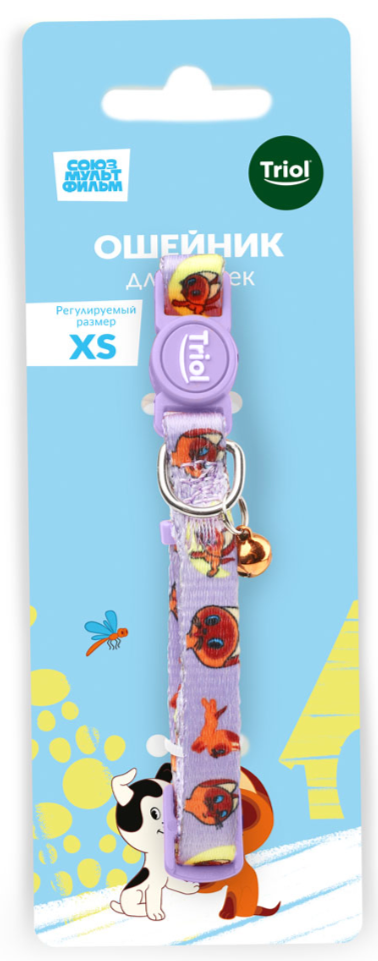 Triol СОЮЗМУЛЬТФИЛЬМ Ошейник нейлоновый с колокольчиком "Котенок" XS, сиреневый, 10*180-270мм