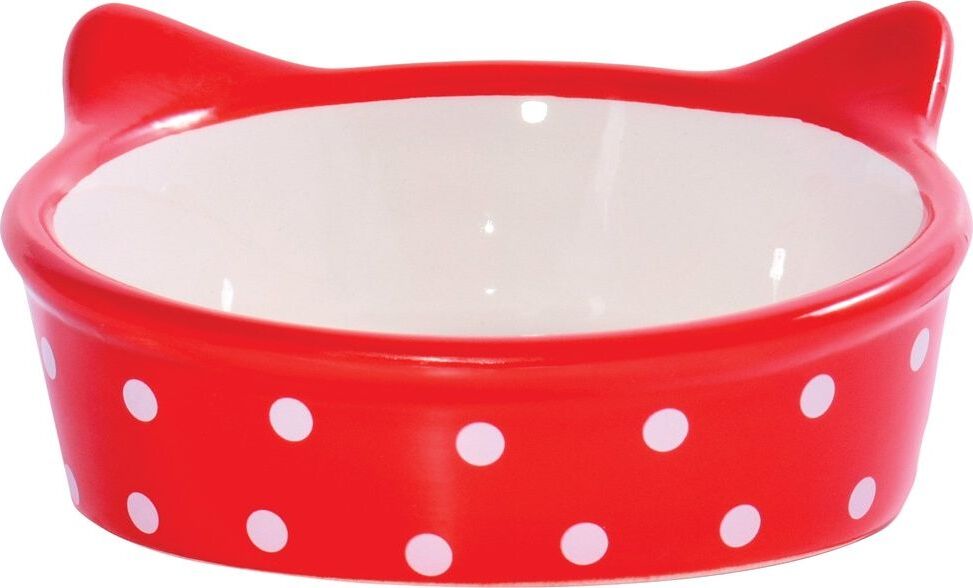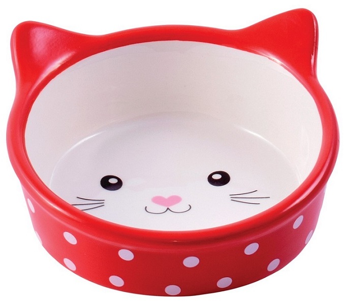 Миска Mr.Kranch керамическая для кошек и собак Мордочка кошки 250 мл красная в горошек