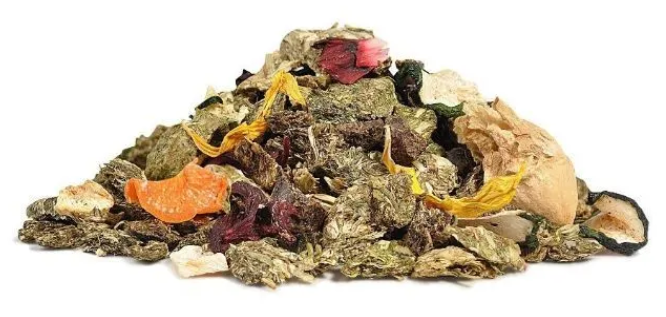 Ингредиенты:nЛуговые и горные травыnЯблочные выжимкиnМука из семян подсолнечникаnСемя льнаnЛьняное маслоnФруктоолигосахариды (0,9%)nСушеный пастернак (1,4%)nСушеный цуккини (1,4%)nГибискус (0,9%)nСушеная морковь (0,9%)nСушеное яблоко (0,8%)nСушеный сельдерей (0,7%)nЦветы кактуса (0,5%)nЛепестки подсолнечника (0,4%)nДрожжевой экстракт (0,75%)nЭкстракт юкки (0,01%)