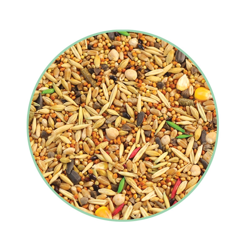 Состав: Просо белое, просо красное, ячмень, пшеница, овёс, семена подсолнечника, травяные гранулы, гречка, горох, кукуруза, суданка, арахис, попкорн, шиповник, витаминный комплекс