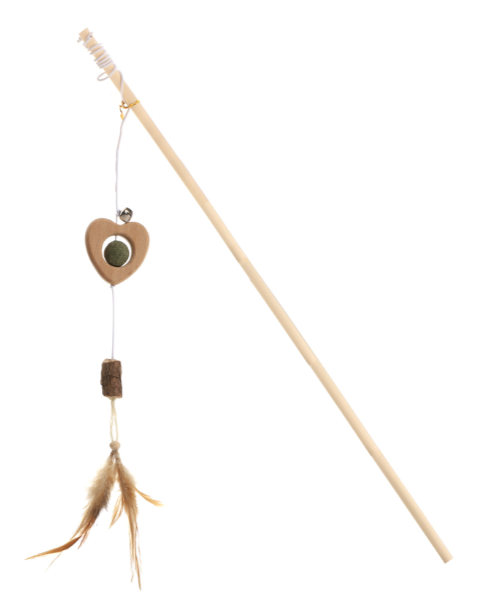 физическую форму и инстинкт хищника. Мелодичный звон бубенчика привлечет внимание вашего котика и увлечет его на долгое время. В составе игрушки: кошачья мята, перья, палочки мататаби и джут. Цвет: бежево-коричневый. Размер изделия: длина подвески: 240мм; длина удочки: 400мм; длина сердца: 53мм; длина палочки мататаби: 30мм; длина пера: 110мм. Triol Natural – линия товаров для питомцев из натуральных материалов. Каждая игрушка сделана с заботой о потребностях наших питомцев и вдохновлена природой.