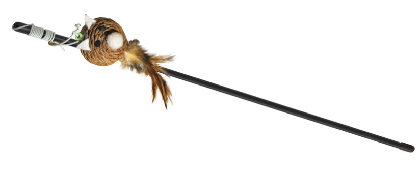 Благодаря подвижной игрушке на конце такая удочка-дразнилка способна надолго завладеть вниманием домашнего охотника.