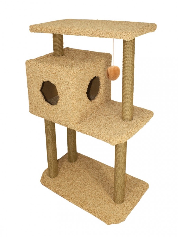 Прочный, с мягким, приятным на ощупь, покрытием, отличного качества когтеточками, устойчивый игровой кошачий комплекс с большим разнообразием вариантов для игр и отдыха.