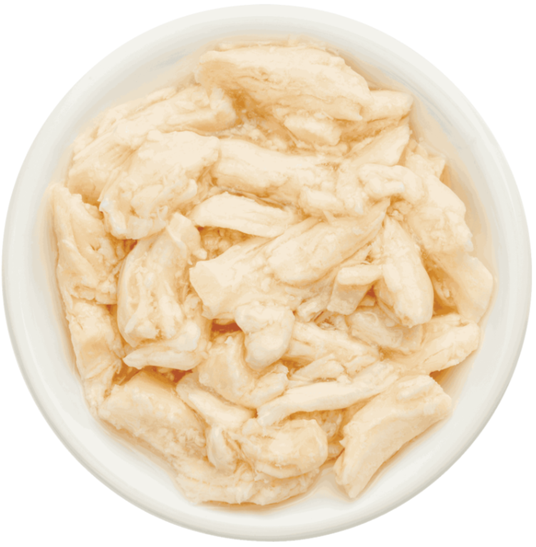 Состав: курица 58 %, бульон из курицы 40 %, натуральная желирующая добавка.nПищевые добавки: пивные дрожжи (источник пребиотика МОС), пребиотик ФОС, рыбий жир (анчоус), витамин Е, таурин, минералы.nПищевая ценность, %: протеин — 9,5; жир — 1,5; клетчатка — 1; зола — 1,5; влажность — 89; энергетическая ценность — 52 ккал.