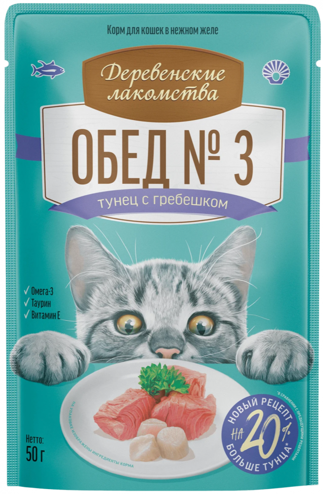 Влажный корм Деревенские лакомства Обед № 3. Тунец с гребешком нежный паштет 50 г
