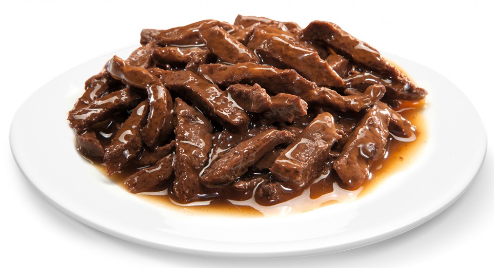 Состав: мясо и субпродукты минимум 34% (в том числе говядина), мука из зерна (пшеница, рис), плазма крови, аминокислоты (в том числе метионин и таурин), загустители, минеральные вещества, гемоглобин, витамины, ксилоза, подсолнечное масло, натуральные красители, L-карнитин.