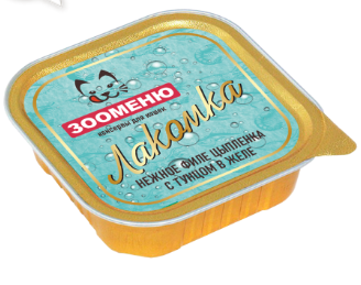 ЗООМЕНЮ Лакомка консервированный корм для кошек - это сочетание нежной грудки цыпленка и грудки индейки и морепродуктов в натуральном желе! Подходит в качестве дополнительного питания к основному рациону питомца. Зооменю Лакомка