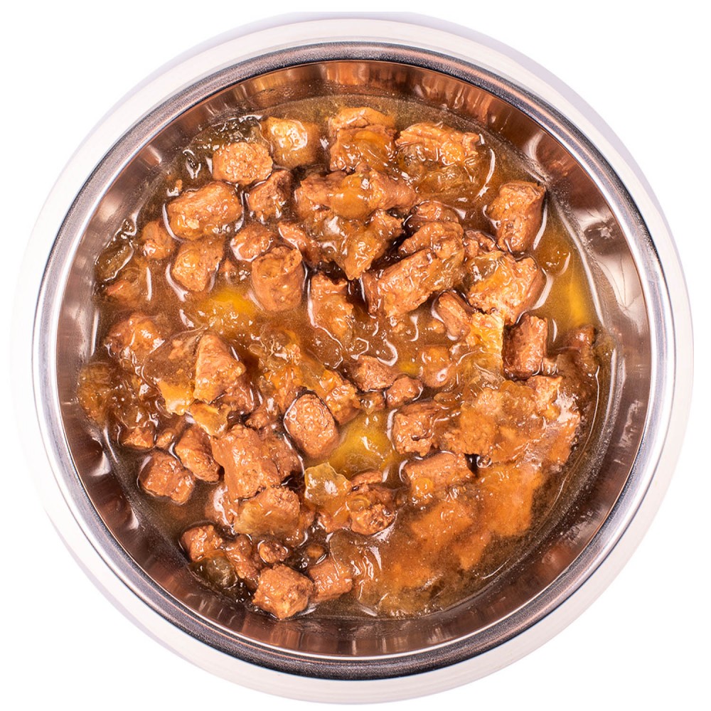 Состав: мясо и мясные субпродукты (свежее мясо итальянского кролика 35%, свинина 10%), рыбий жир (очищенное лососевое масло 2%), овощи (картофель), минералы, сухой молочный белок.