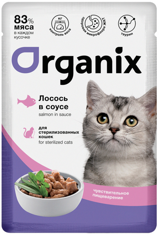 Паучи Органикс СТЕРИЛ деликат пищевар Лосось: СОУС 85 г для кошек
