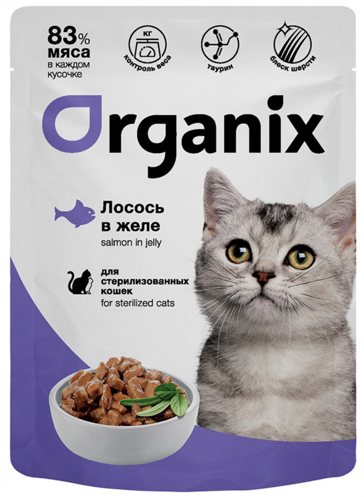 Паучи Органикс СТЕРИЛ Лосось: ЖЕЛЕ для кошек 85 г