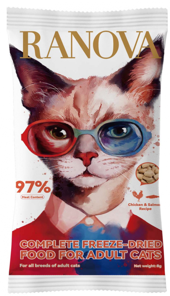 Полнорационный сухой (сублимированный) корм Ranova для кошек с курицей и лососем, 8 г