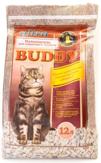 Наполнитель впитывающий для кошачьего туалета Buddy УЛЬТРА, для длинношерстных кошек, 12 л Эффективный впитывающий наполнитель на основе прочной пористой горной осадочной породы. Благодаря тонкопористой структуре наполнитель безупречно поглощает влагу и полностью устраняет неприятные запахи. При впитывании наполнитель не прилипает