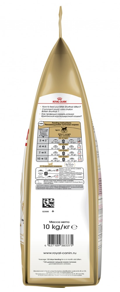 Полнорационный корм для котят породы британской короткошерстной в возрасте от 4 до 12 месяцев