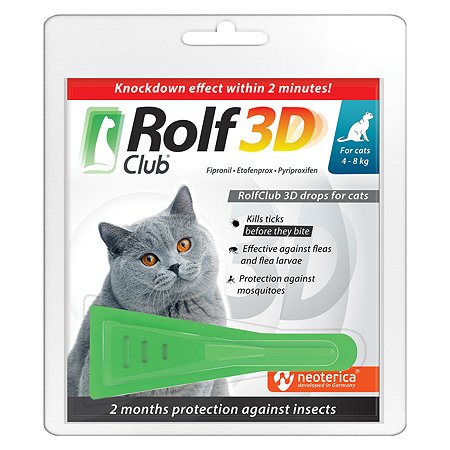 RolfClub 3D (Neoterica) капли для кошек 4 - 8 кг, от блох и клещей, 1 пипетка