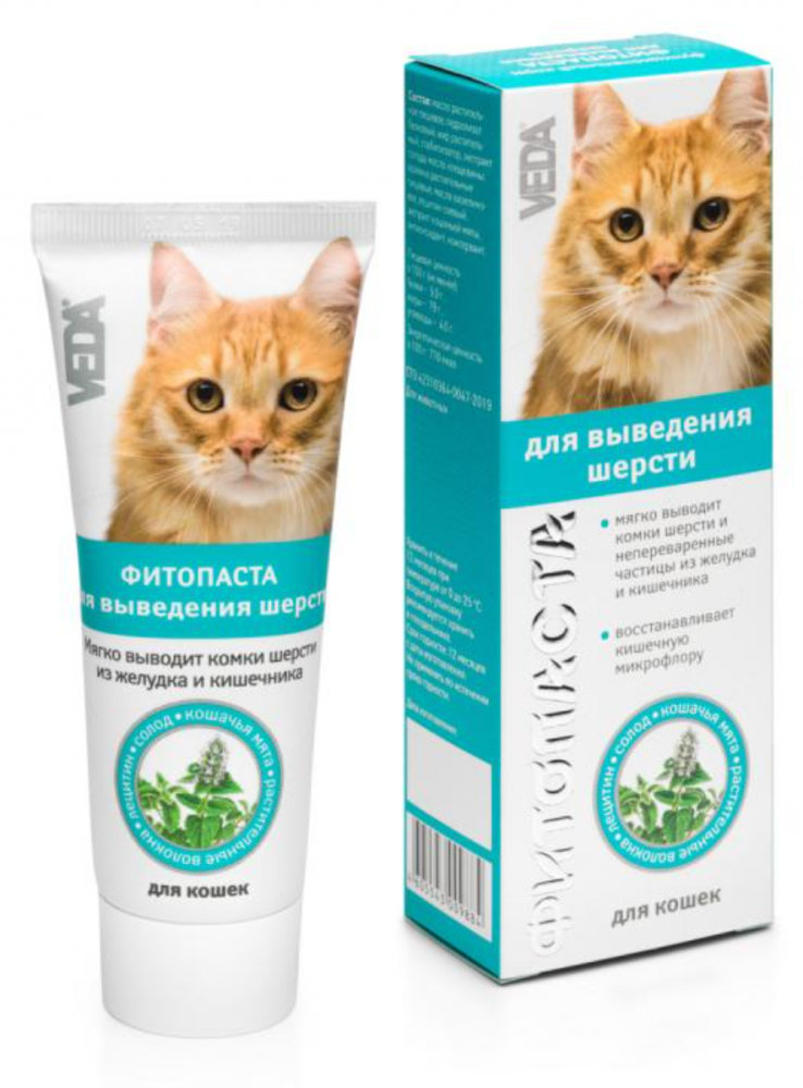 Способствует выведению из желудочно-кишечного тракта кошек (котят) комков шерсти, непереваренных частиц корма и фрагментов съеденных игрушек.
