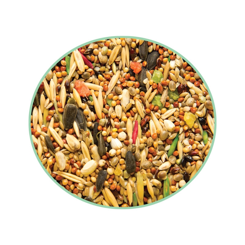 Состав: Просо белое, просо красное, овёс, овёс очищенный, канареечник, семена подсолнечника, лён, конопля, суданка, сорго, сафлор, цукаты, свекла, кунжут, витаминный комплекс