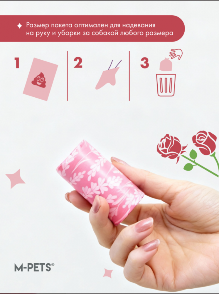 M-PETS Пакеты гигиенические для выгула собак, с ароматом розы, 60 шт