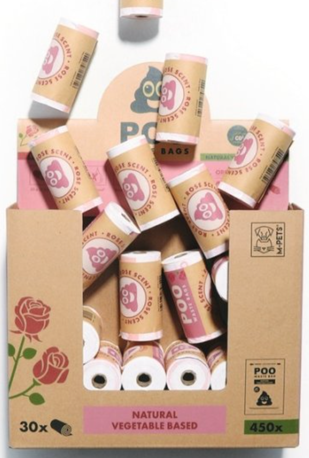 M-PETS Пакеты гигиенические для выгула собак ЭКО, запах Роза, цвет белый, 30 шт