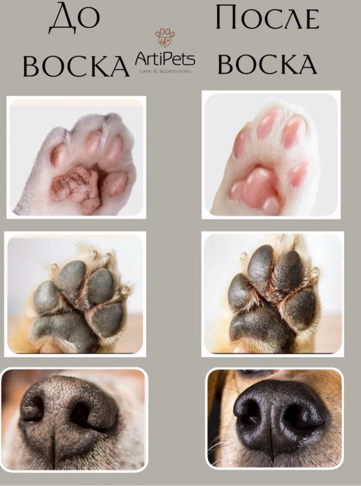 и шелушение. Защита лап: Создает надежный барьер от агрессивного воздействия окружающей среды, включая реагенты. От трещин: эта мазь способствует заживлению и предотвращает появление новых трещин на подушечках лап. Натуральный состав: воск бальзам для лап безопасен для питомцев, не вызывает аллергии. Наш воск – это не просто защита, это полноценный уход за лапами вашего питомца. Используйте его как масло или вазелин для лап собак и кошек. Подарите своим любимцам здоровые и ухоженные лапки! Идеальное решение от сухости и шелушения, а также надежная защита лап в любое время года.