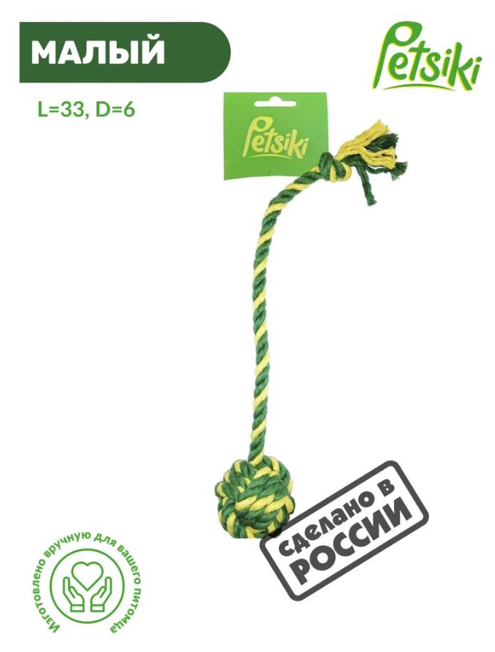Игрушка для животных Мяч канатный Petsiki Петсики малый (желтый-зеленый-зеленый) канат для собак