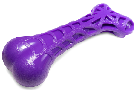 Фактурная игрушка для собак в форме кости с узором "паутинка" из термопластичной резины с пищалкой поможет поддержать в тонусе жевательные мышцы, укрепить и очистить зубы питомца. Кость устойчива к укусам собак крупных и средних пород с массивными челюстями. Идеальна для аппортировки и игры на воде, благодаря нанесенному объемному
