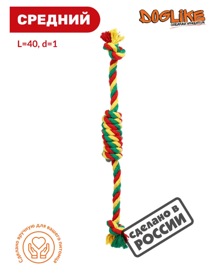 Игрушка для животных Doglike "Канатная сарделька", средняя, цветной, длина 40 см (канат для собак)