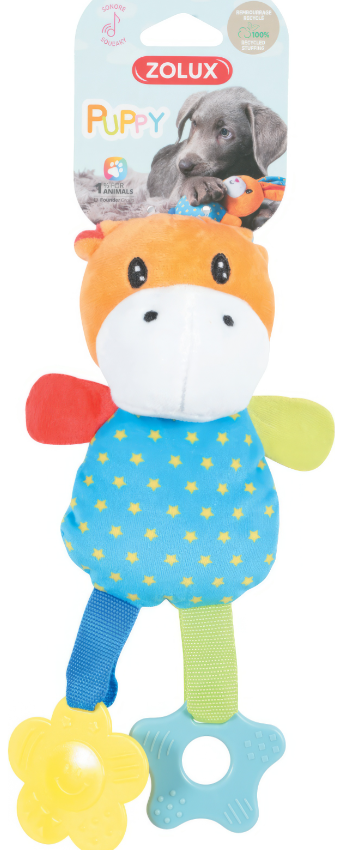 Zolux Игрушка Радужный бегемот для щенков, с пищалкой, полиэстер, полиэтилен, оранжевая, 24.5 см