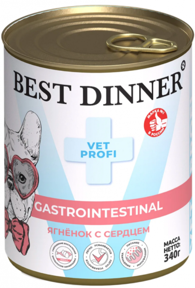 Консерва Бест Диннер Гастро Ягненок с сердцем для собак 340 г: ПАШТЕТ