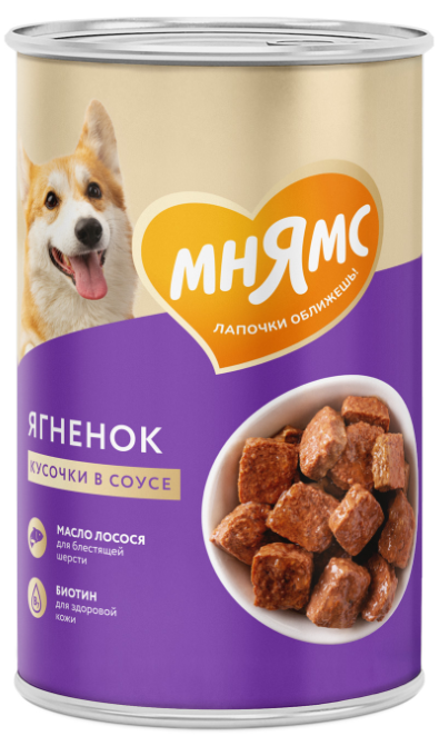Влажный корм Мнямс Консерва Кусочки в соусе с ягненком для собак всех пород «КРАСИВАЯ ШЕРСТЬ» 400 г