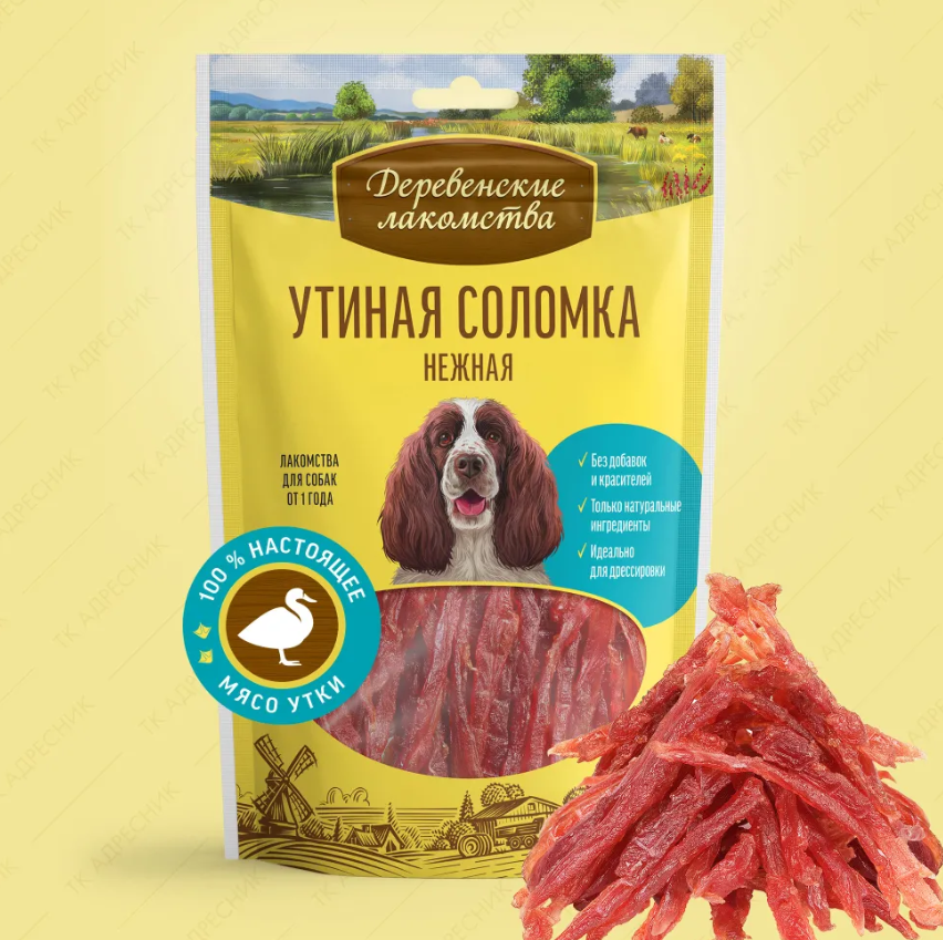 дрессуры и поощрения "Деревенские лакомства" отбираются и обрабатываются вручную и могут служить эталоном лакомств для домашних животных.