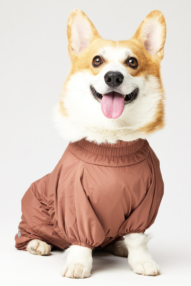 Красивый и практичный дождевик для корги от «Lion Manufactory» - оптимальное решение для создания комфортной температуры для питомца в ненастную погоду. Не стесняет движений, защищает от грязи и воды. При изготовлении дождевика использовались экологически безопасные материалы.