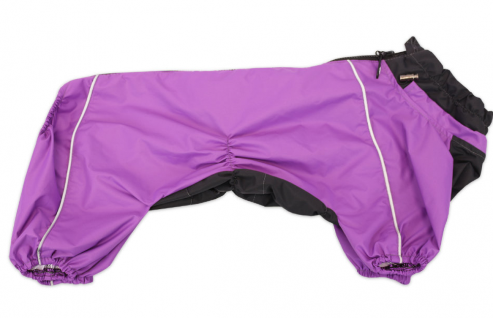 Застежка - молния. Ветрозащитный клапан на молнии. Светоотражающие полоски. На горловине имеются фиксаторы, которые позволяют регулировать ее по размеру питомца.