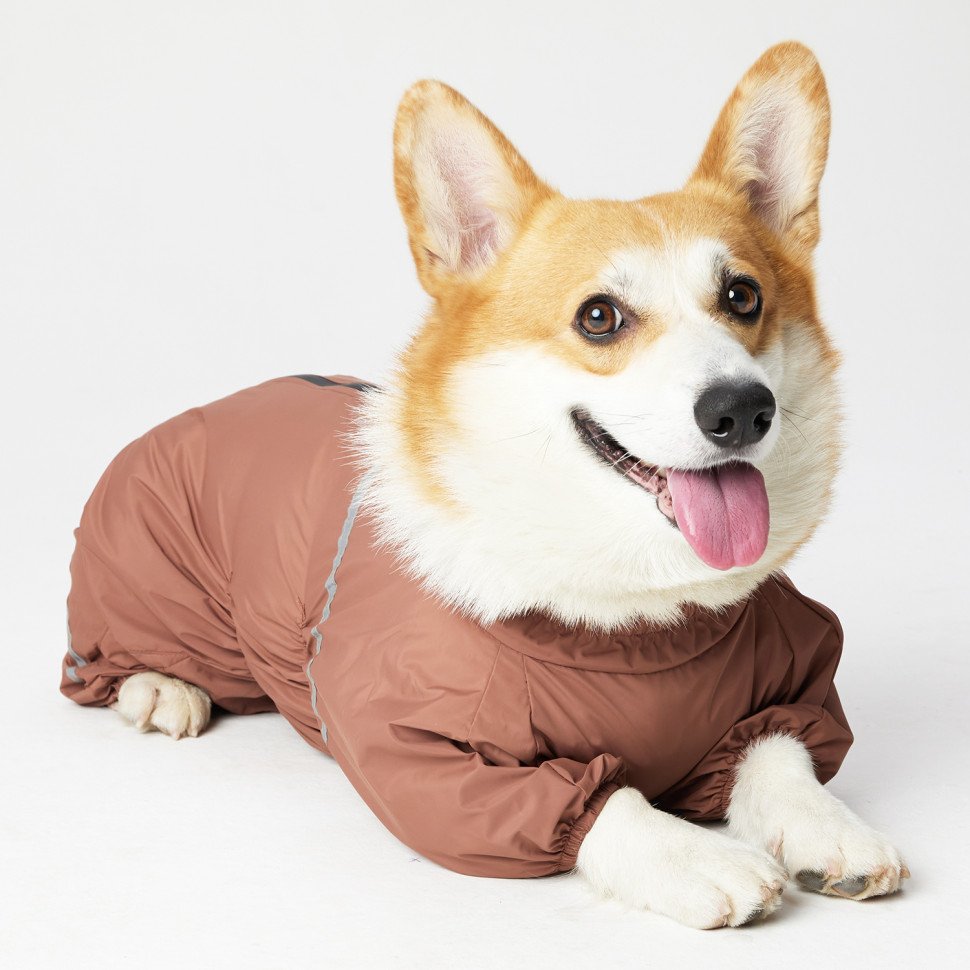 Красивый и практичный дождевик для корги от «Lion Manufactory» - оптимальное решение для создания комфортной температуры для питомца в ненастную погоду. Не стесняет движений, защищает от грязи и воды. При изготовлении дождевика использовались экологически безопасные материалы.