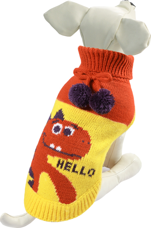 по всему периметру низа изделия обеспечивает плотное прилегание свитера к телу, ворот украшен помпонами. Такой свитер с модным принтом станет украшением гардероба вашего питомца. Материал: акрил. Цвет: оранжево-желтый. Размер: 30 см (M).