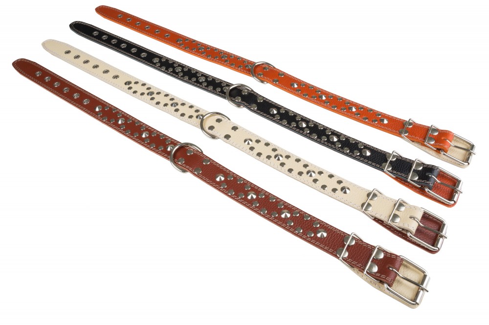 Ошейник №36 с подкладом клепанный с кольцом посередине