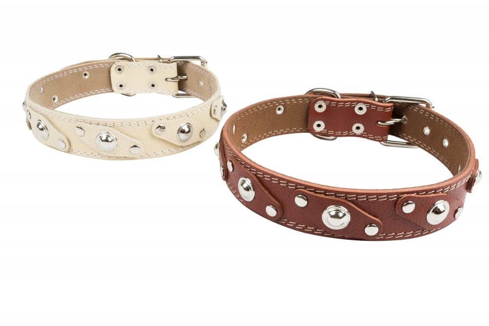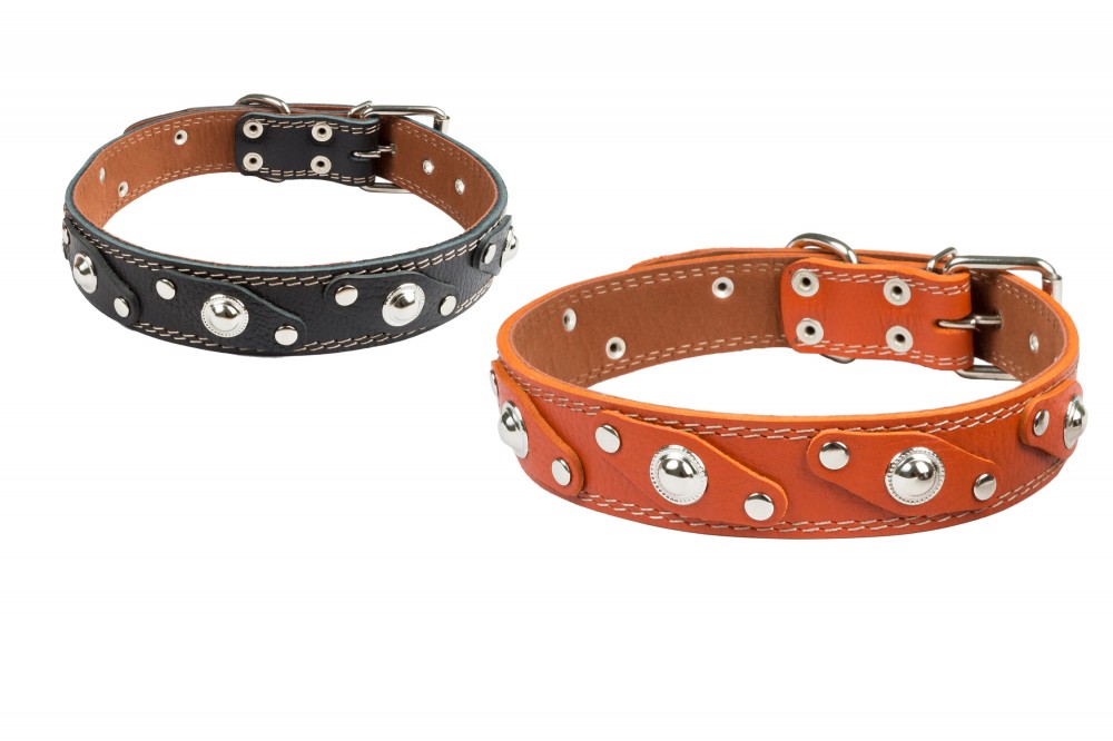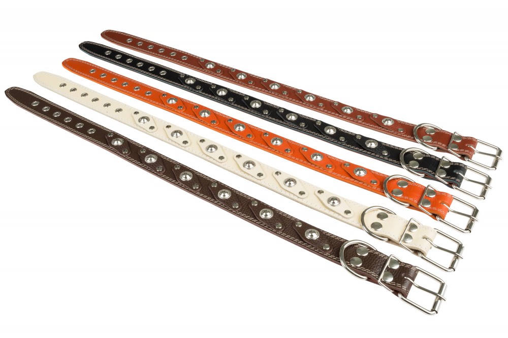 Ошейник №36 1 слой с подкладом украшенный. Цвет в ассортименте