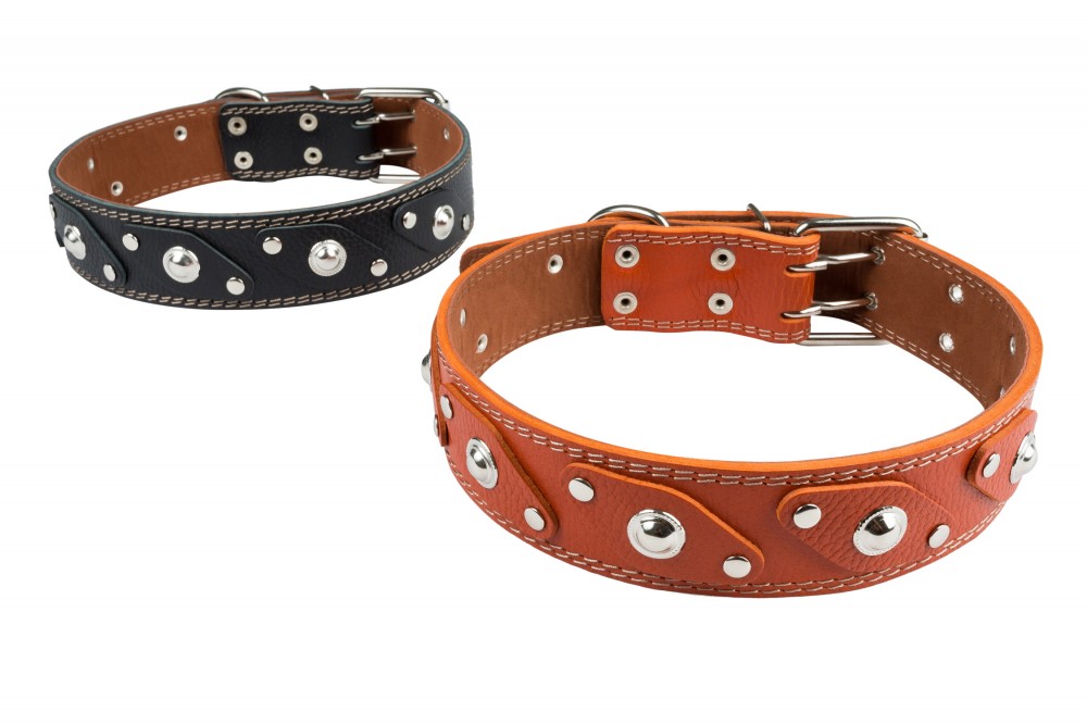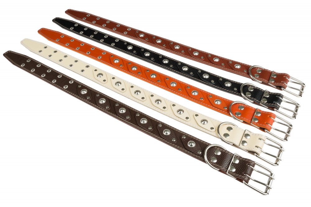 Ошейник №45 1 слой с подкладом украшенный. Цвет в ассортименте