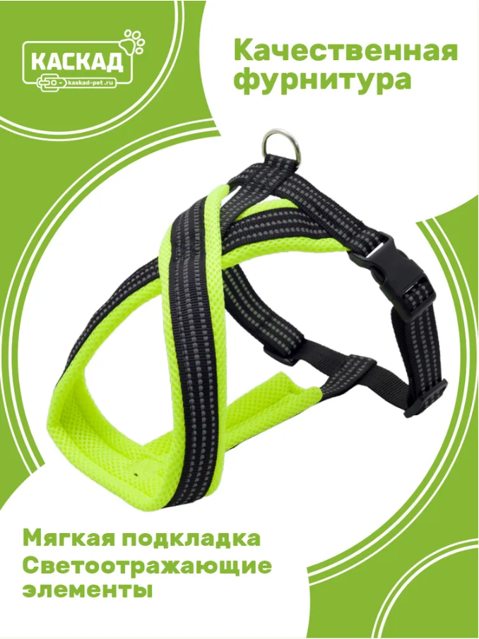 Шлейка Каскад нейлон Х-образная с мягкой подкладкой 20мм х 40см х 44/55см, зеленая