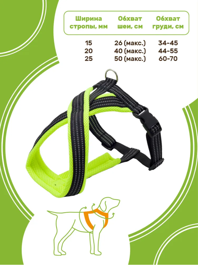 Амортизирующая подкладка на шлейке бережно заботится о шерсти и коже животного - не спутывая её и не повреждая.