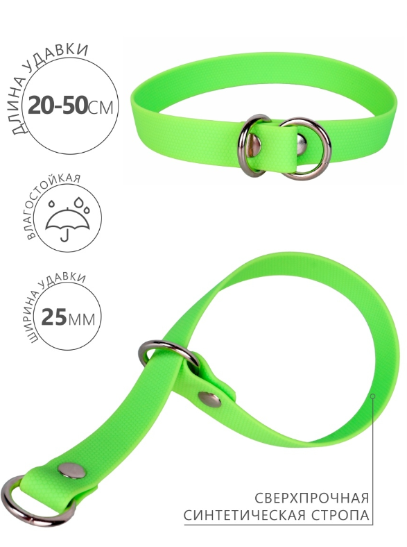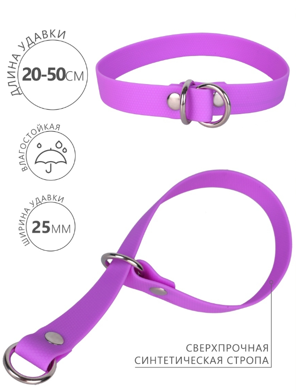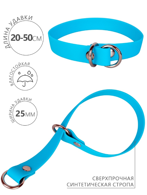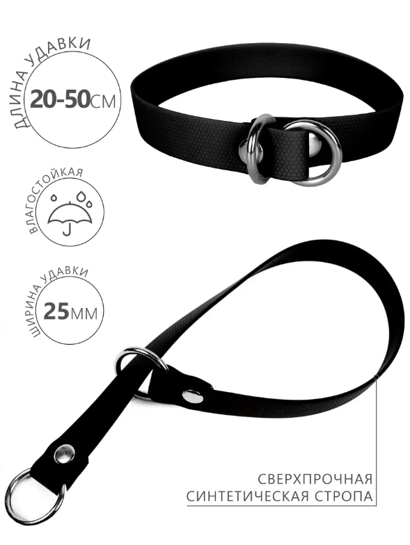 Ошейник-удавка сделан из особого материала, имеющего высокую популярность во всем мире: синтетической стропы, покрытой полимерной оболочкой.