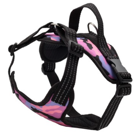 Шлейка нейлоновая "Динамик" малая принтованная с ручкой шея 37-49 см грудь 49-59см, розовая