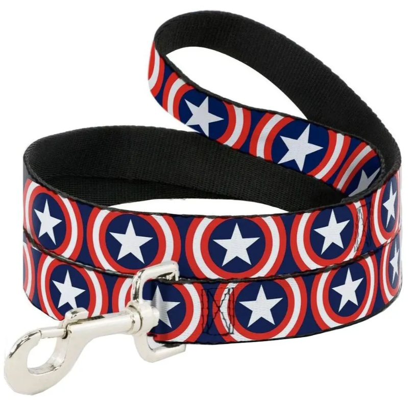 Buckle-Down Поводок Капитан Америка, синий, полиэстер, 120 см Поводки Buckle-Down это не только функциональный и прочный, но и очень стильный аксессуар, который сделает вашего четвероного приятеля звездой любой прогулки. Это отличный способ не расставаться с любимыми героями фильмов и комиксов даже во время прогулки с собакой. Вы найдете большой