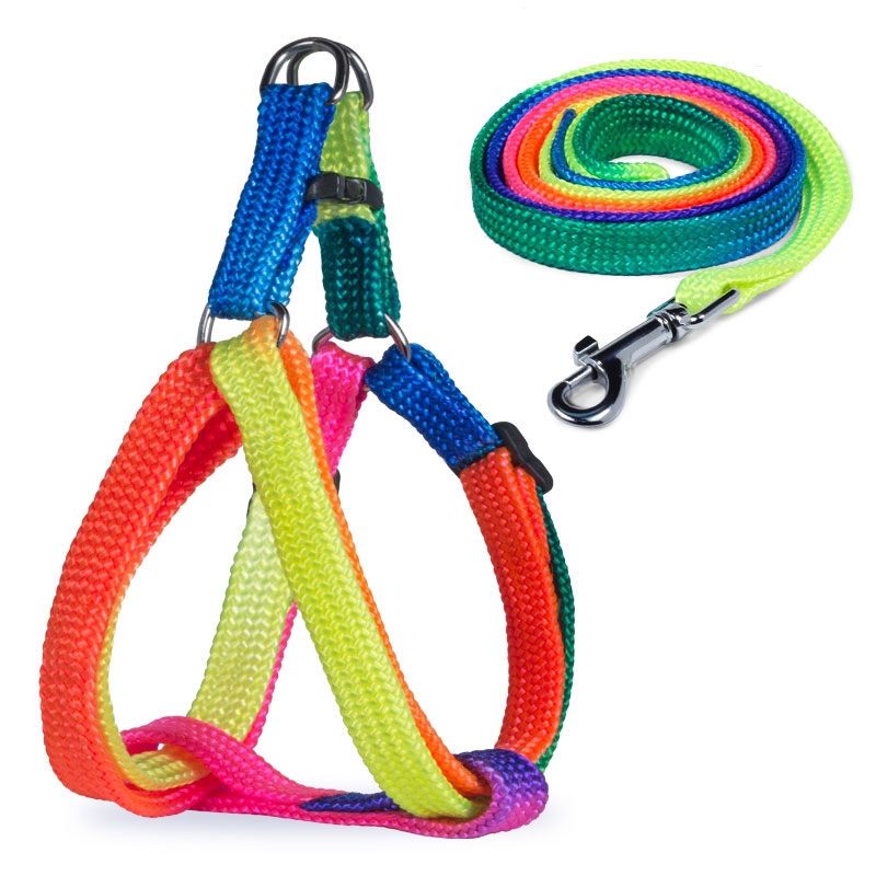 Набор из ярких и функциональных комплектов для кошек и собак, включающих шлейку и поводок в единой стилистике. Каждый комплект изготовлен из высококачественного нейлона с использованием крепкой металлической фурнитуры. Длина шлейки регулируется, сбоку от застежки имеется удобное кольцо для крепления поводка. Размеры изделия: