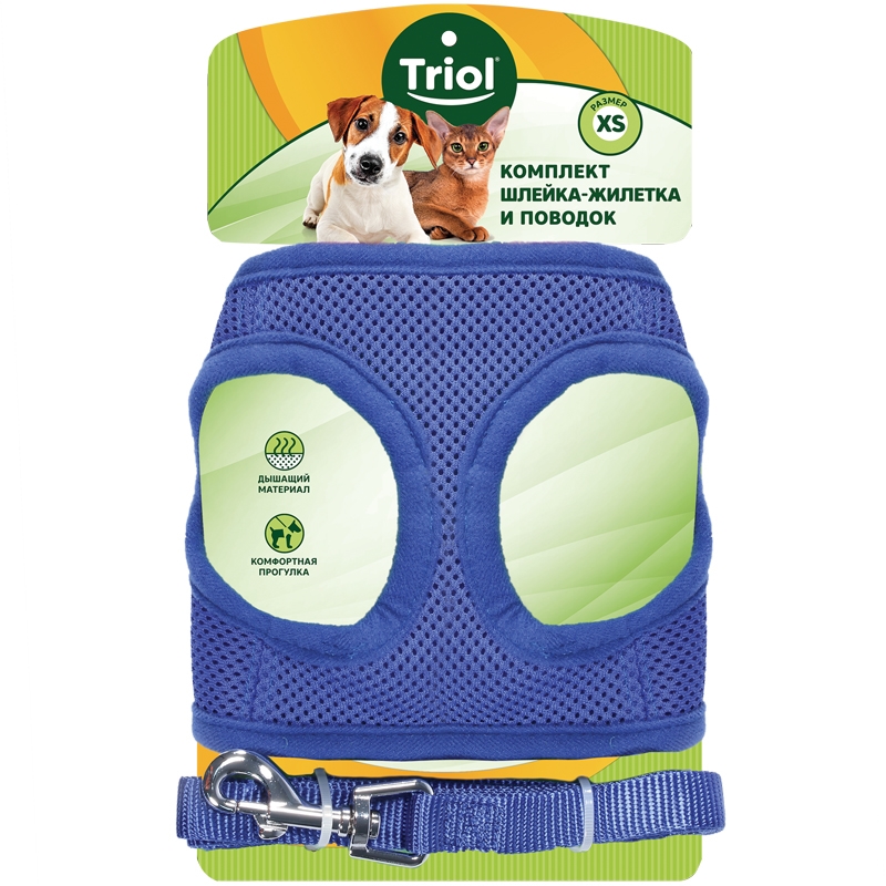 Triol комплект мягкая шлейка-жилетка и поводок нейлоновый, размер S, обхват груди 350 мм, поводок 15х1200 мм, синий