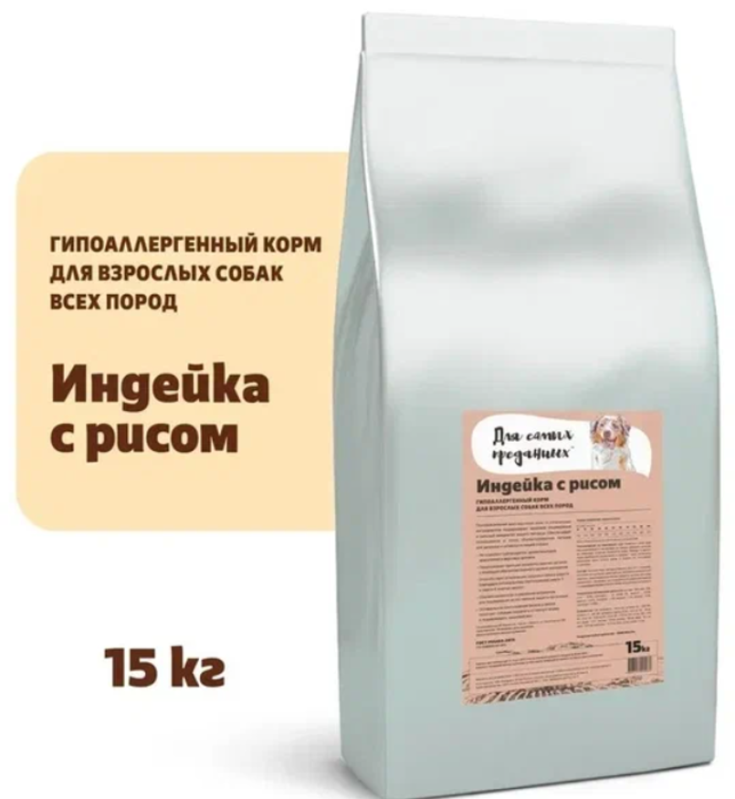 Гипоаллергенный сухой корм эконом класса, для собак всех пород "ДЛЯ САМЫХ ПРЕДАННЫХ"(тм) индейка с рисом-15кг